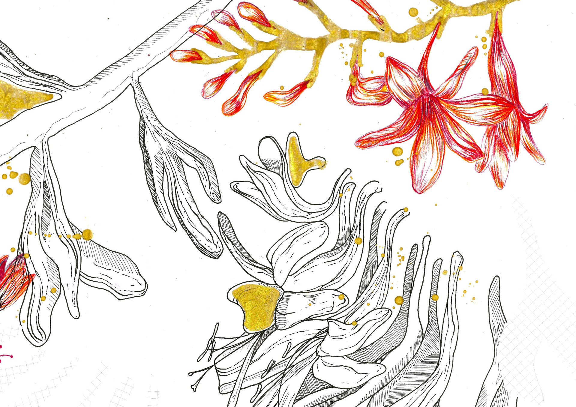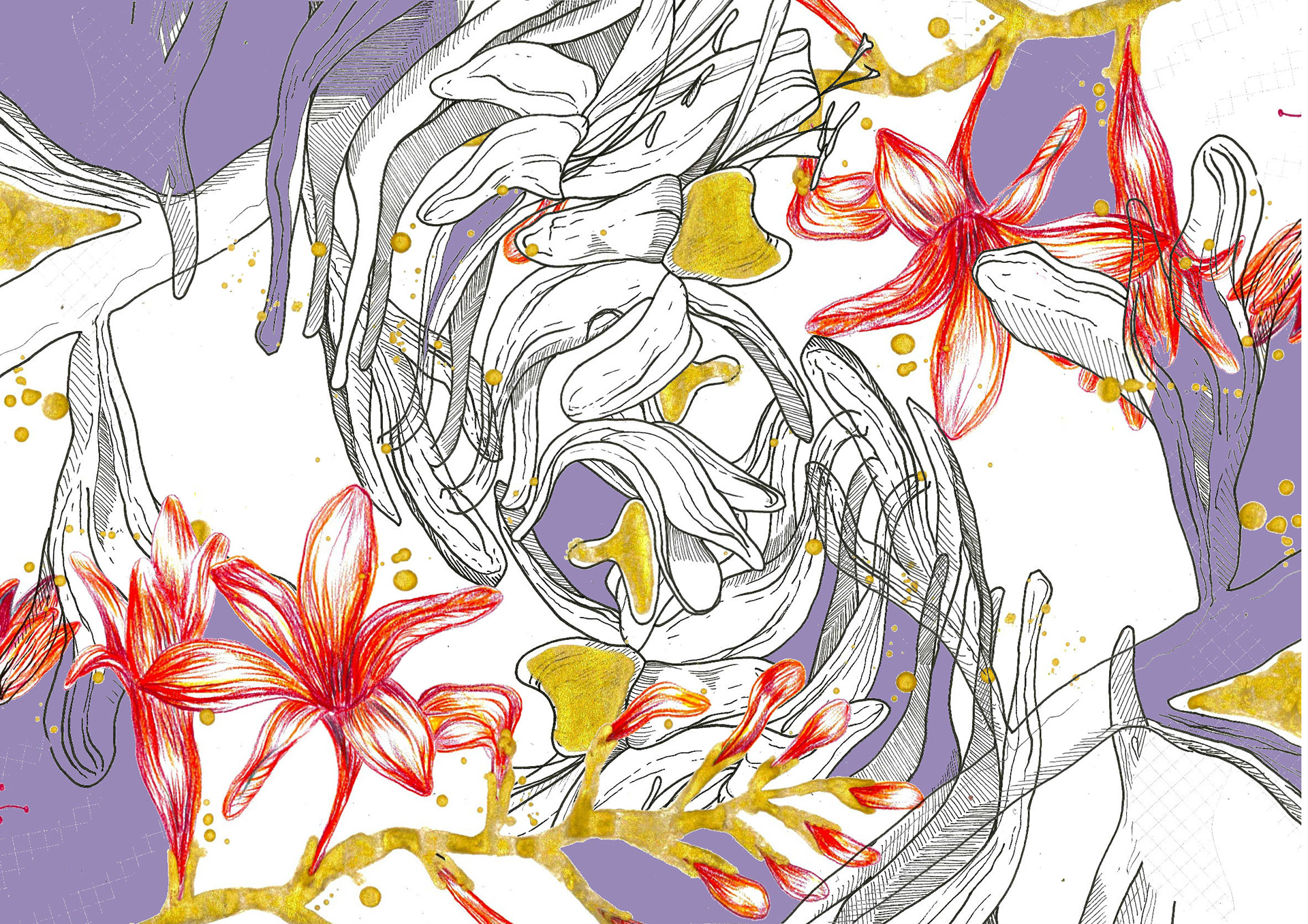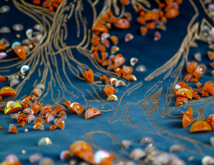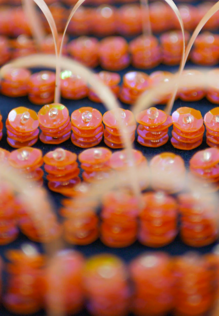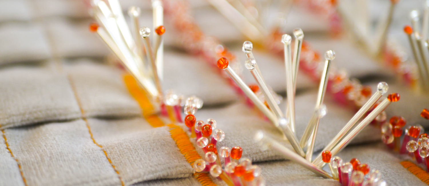 Working towards a brief, I combined glitch imagery with my photographs of flowers to create beautiful textures & surfaces. Utilising deadstock fabric from a local yacht upholsterer and leftover beads from previous projects.